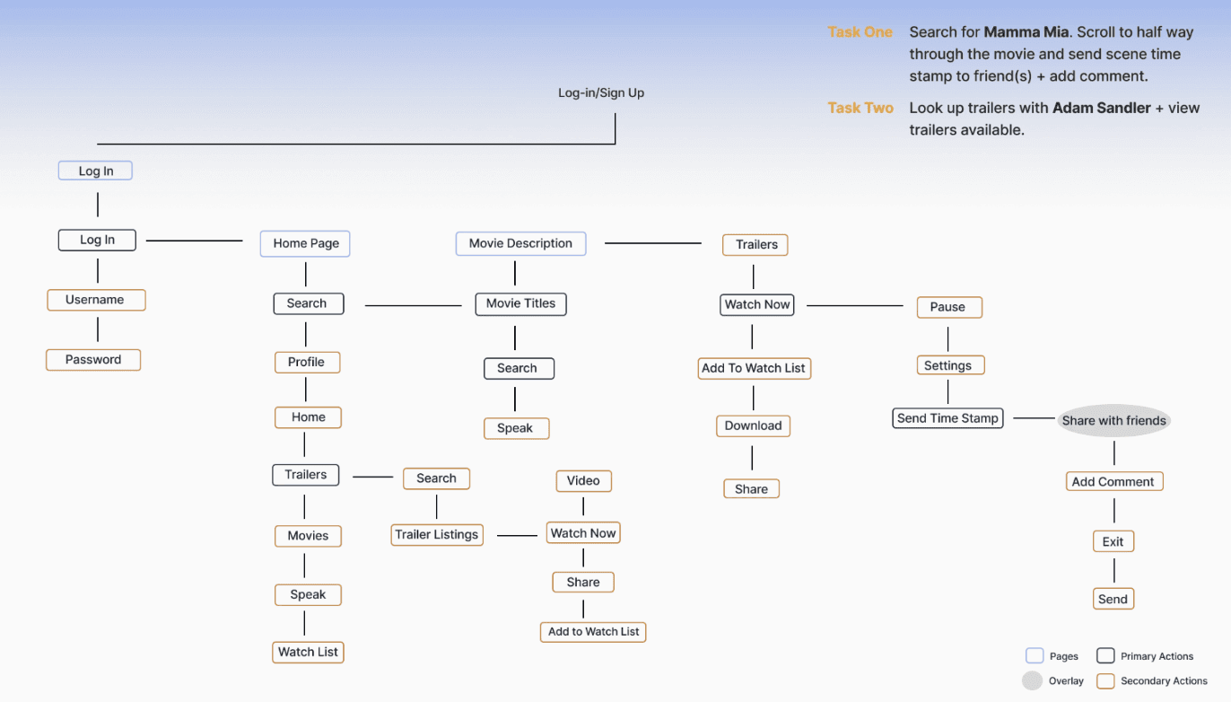 Some of the feedback is that users said there were some problems with hierarchy (text size, some are too small). Alignment needs to be adjusted and flow cleaner. The personalization on the home page is nice and brings more personality to the application. Users like the additional feature of the trailer page. This feedback and information was very helpful in making another iteration and designing for the users.